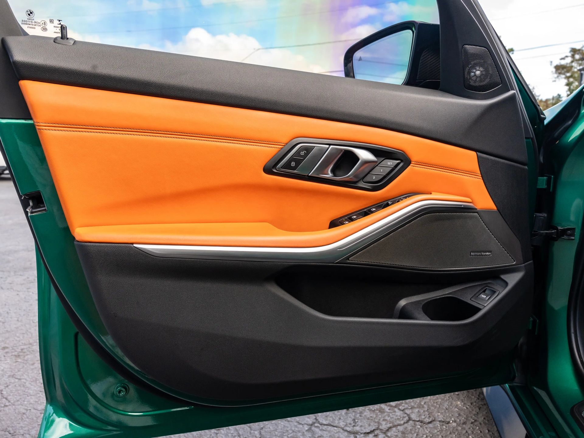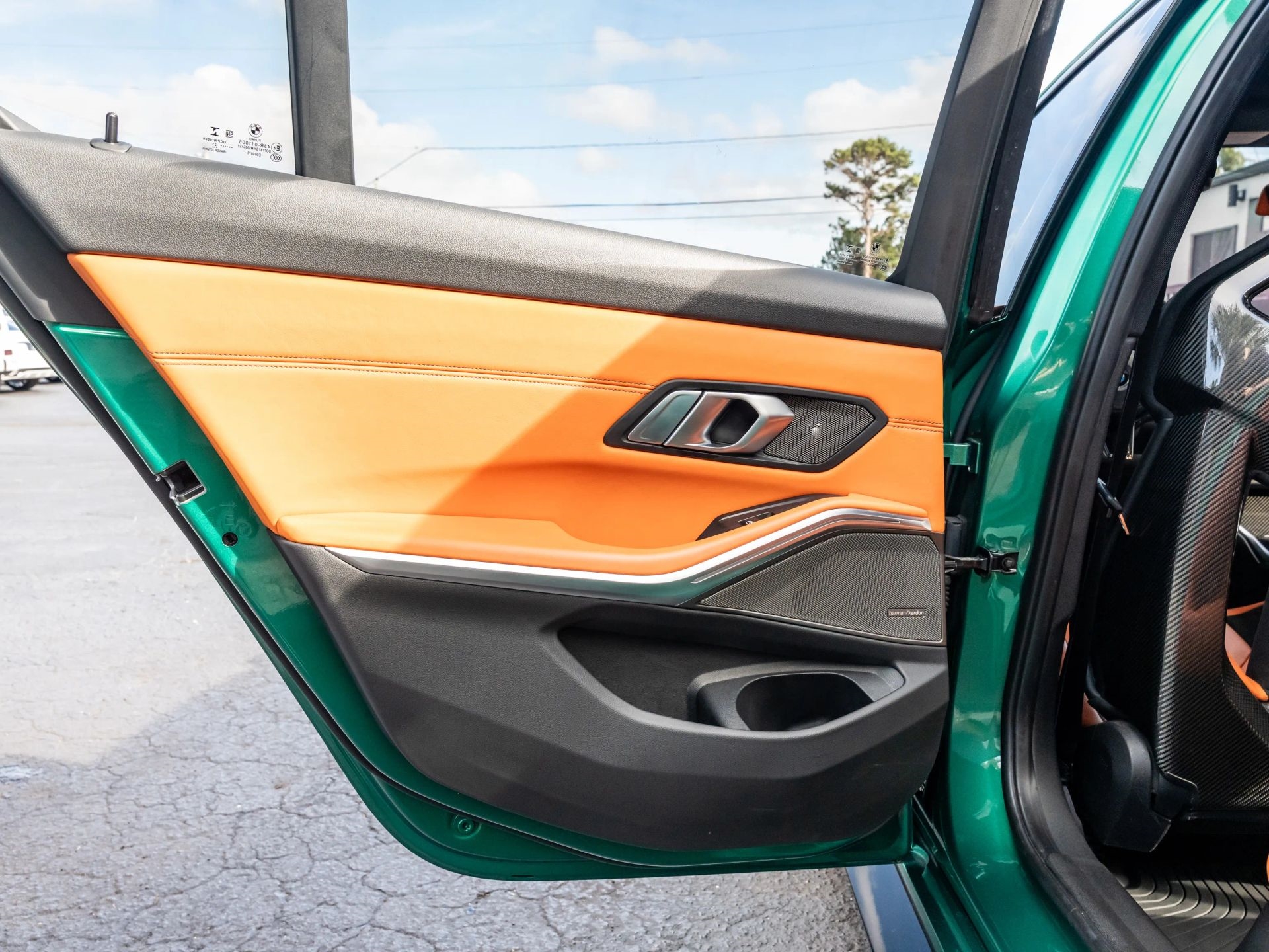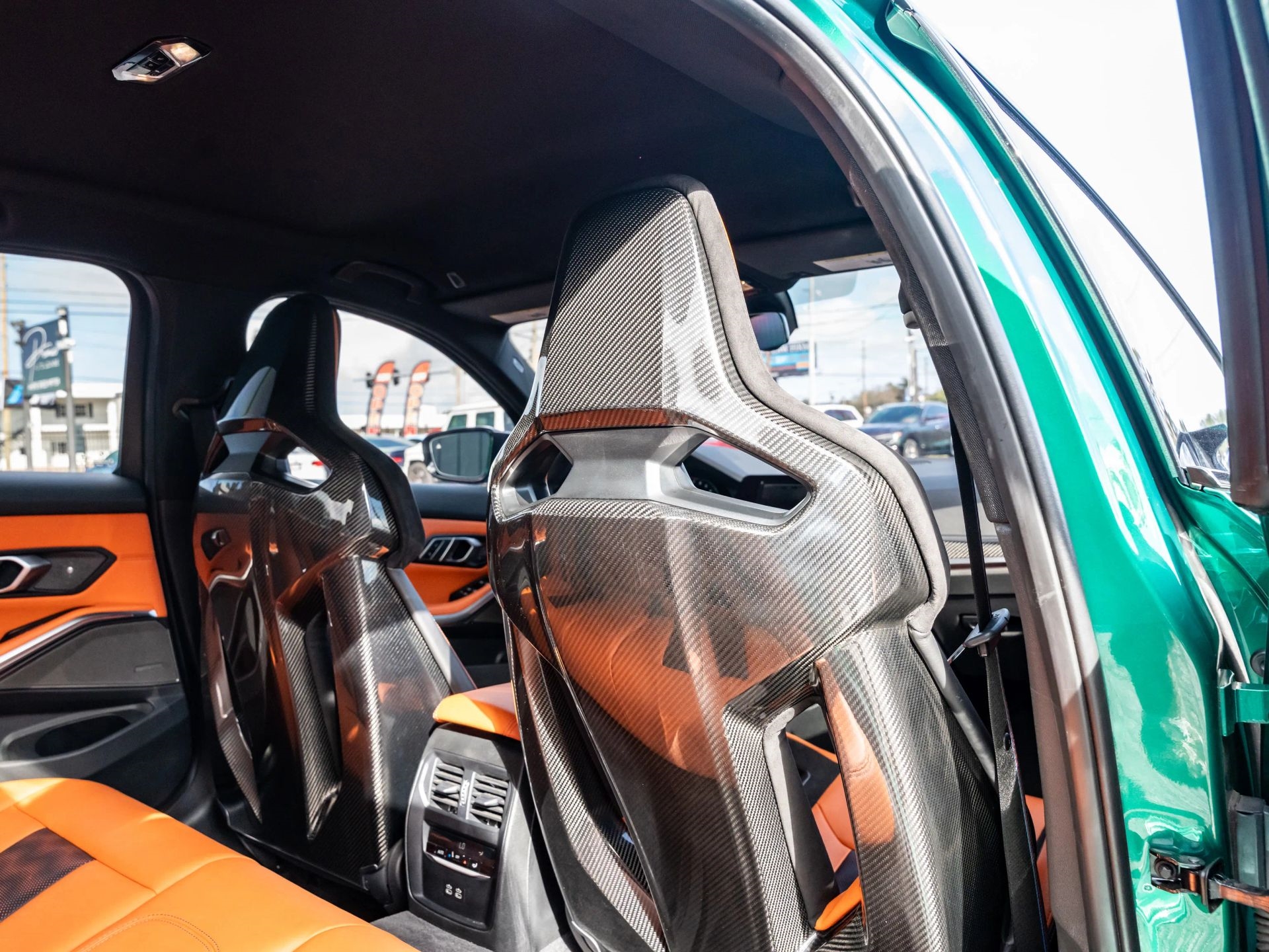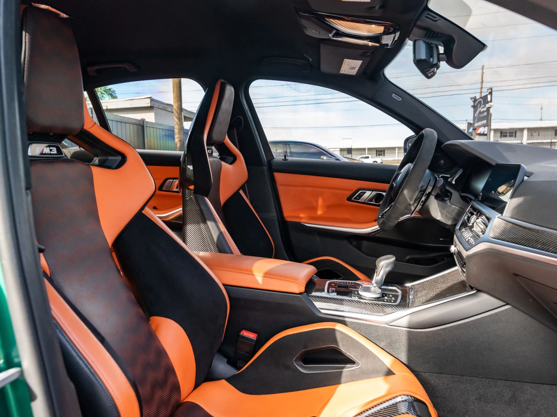 Presenting our 2021 BMW M3 Competition, finished in Isle of Man Green with Kyalami Orange Interior. Powered by a 6 Cyl Twin Turbo 3.0 Liter engine paired with an automatic transmission.