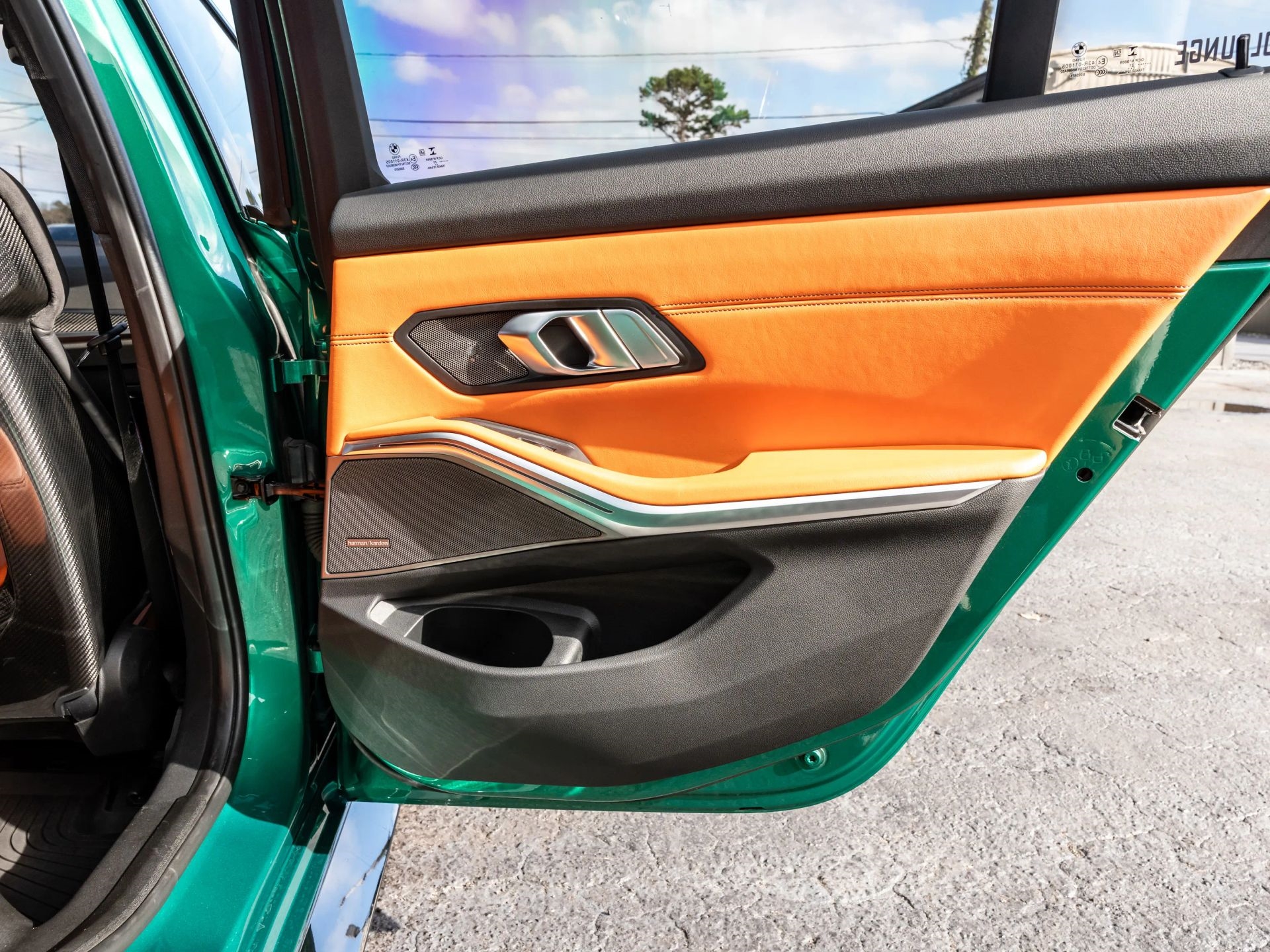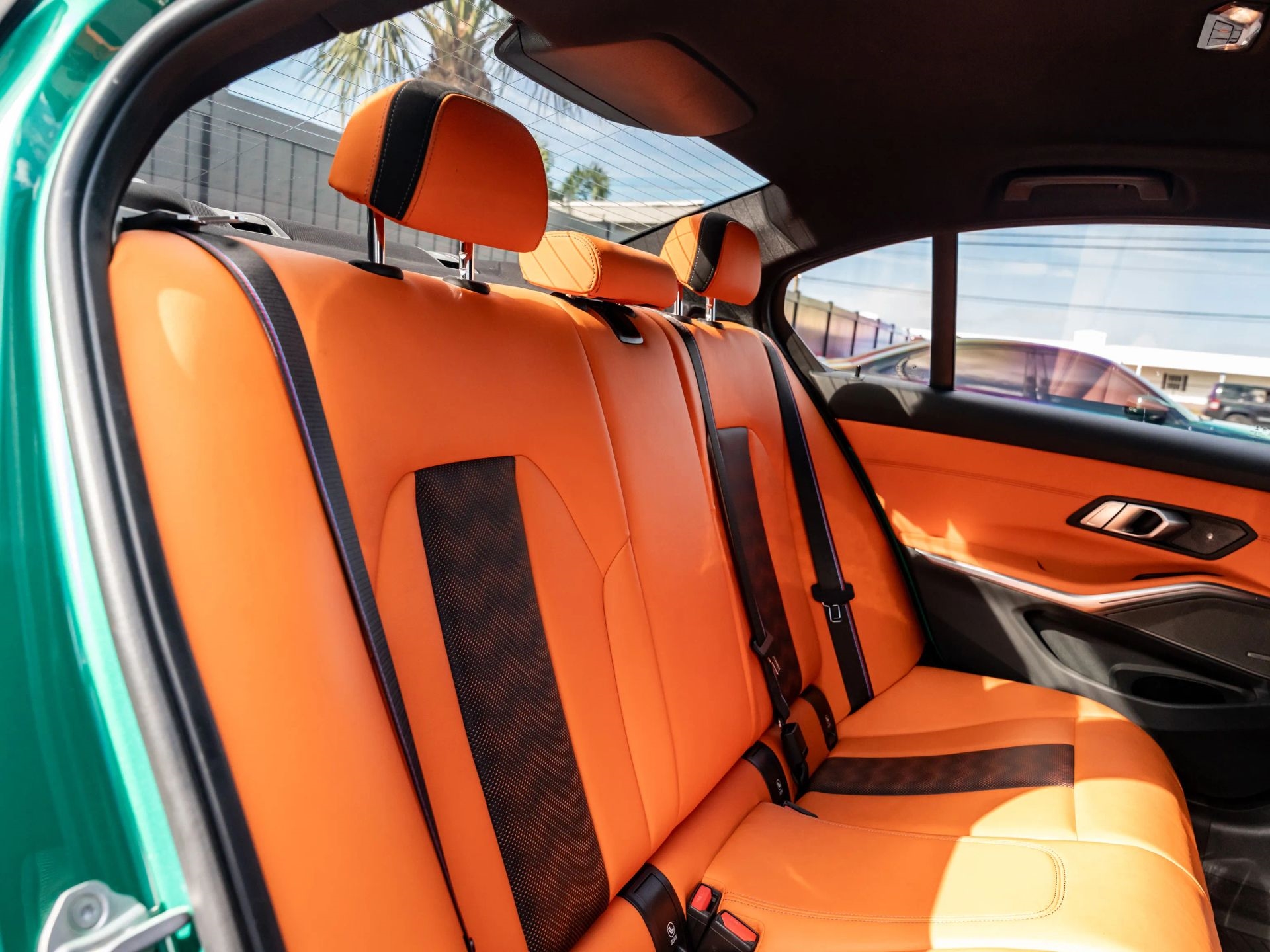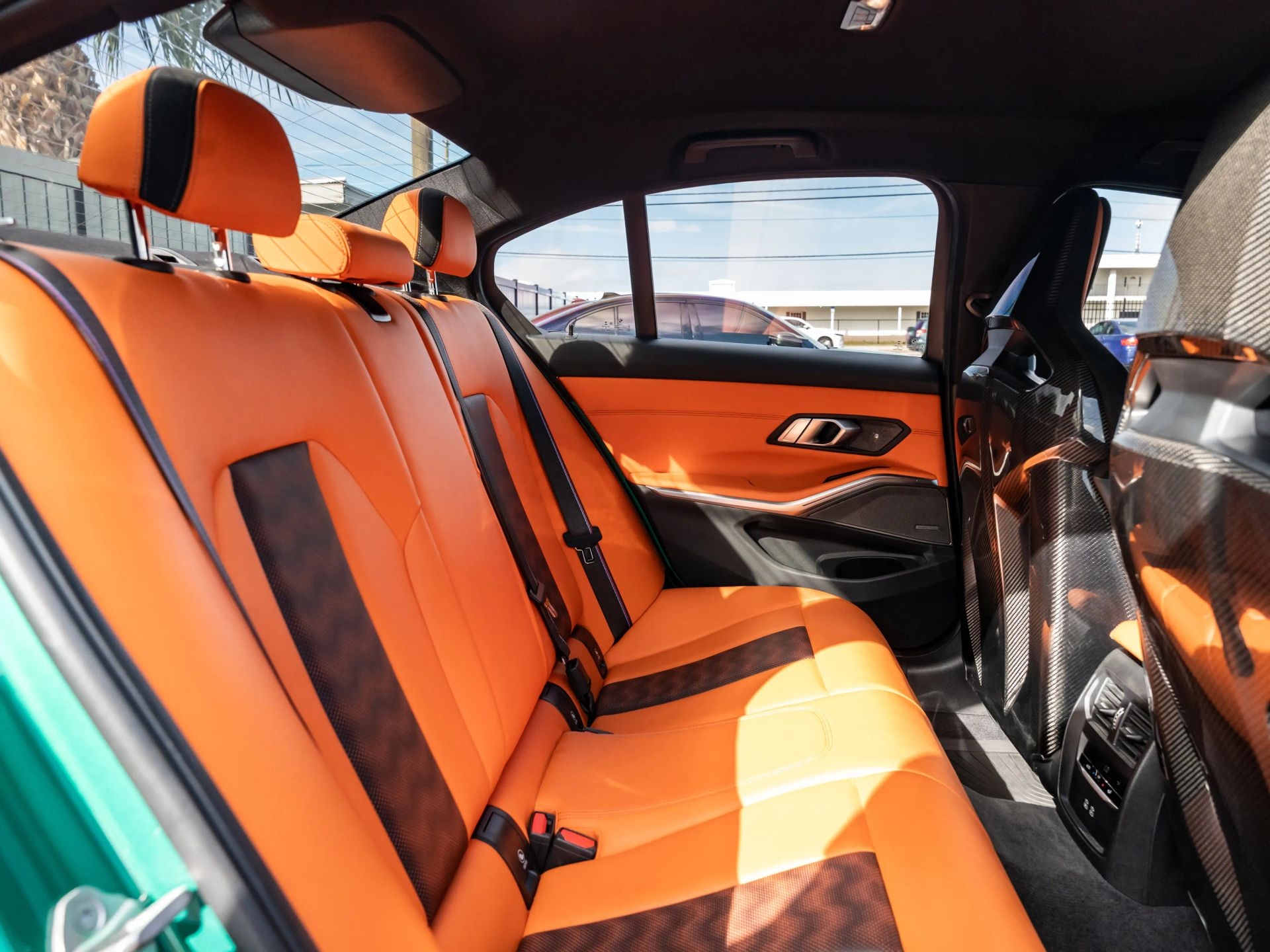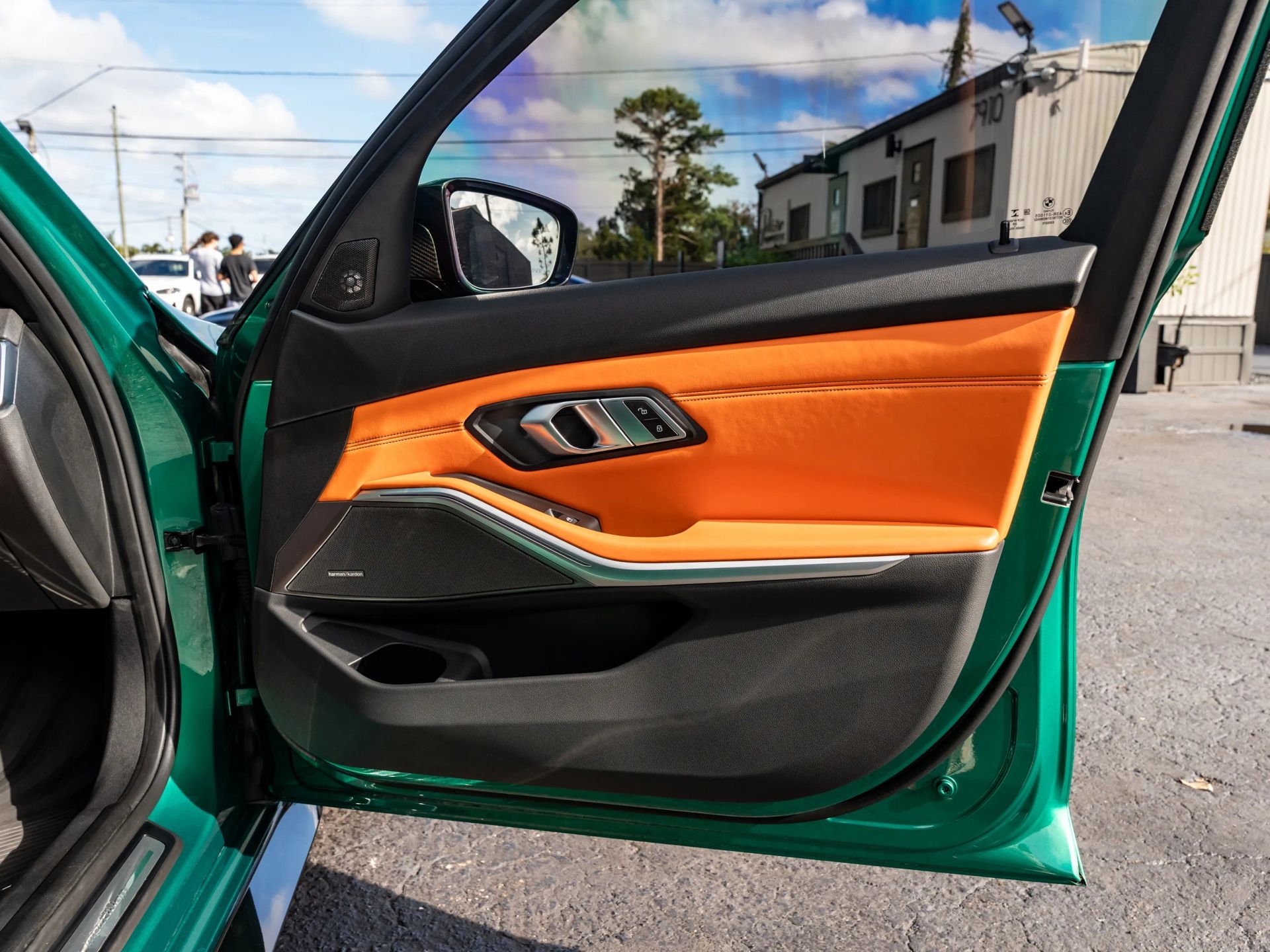 Presenting our 2021 BMW M3 Competition, finished in Isle of Man Green with Kyalami Orange Interior. Powered by a 6 Cyl Twin Turbo 3.0 Liter engine paired with an automatic transmission.